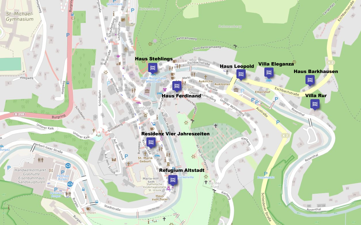 vor, sollten diese ebenfalls verfügbar sein. Diese sind nur wenige Gehminuten von der Villa Rur entfernt.